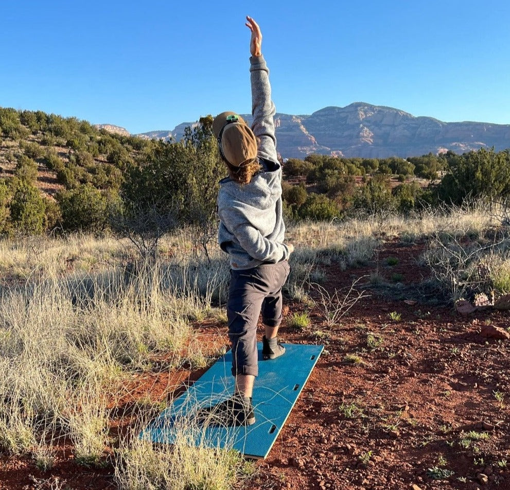 Enjoy a solid and grounded yoga studio feeling on your carpet/rug or almost anywhere in nature! BTW it's foldable, portable, and doubles as an ergonomic chair too! Achieve balance faster & get better alignment in all poses with the added stability of YOGiBOARD! Use your own yoga mat (to double up the padding), yoga rug, yogi toes or just practice directly on the wood surface with the OG Model YOGiBOARD! ....(btw with socks and no mat is super fun!)The OG Model is a great step up from the MiNiMALiST for someone who doesn't like carrying around a mat separately from their YOGiBOARD!
